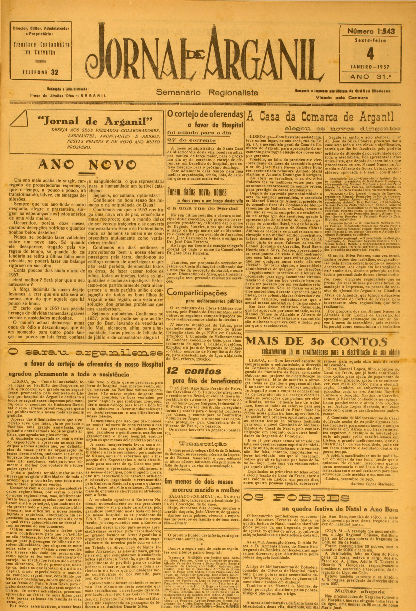 I zr “ Jornal de A rgan il” DESEJA 4 0 5 SE U S PRE Z A D O S C O LABO RAD O RES, A S S IN A N T E S . AN U N C IA N T E S E AMIGOS, F E S T A S F E L IZ E S E UM N O VO AN O MUITO P RÓ SPE RO ANO NOVO Uin ano mais acaba de surgir, car regado de prometedoras esperanças, que o tempo, a pouco e pouco, irá transformando, talvez, em amargas de silusões. Sempre que um ano finda e outro desponta, alegre e prazenteiro, sur gem as esperanças e os ...