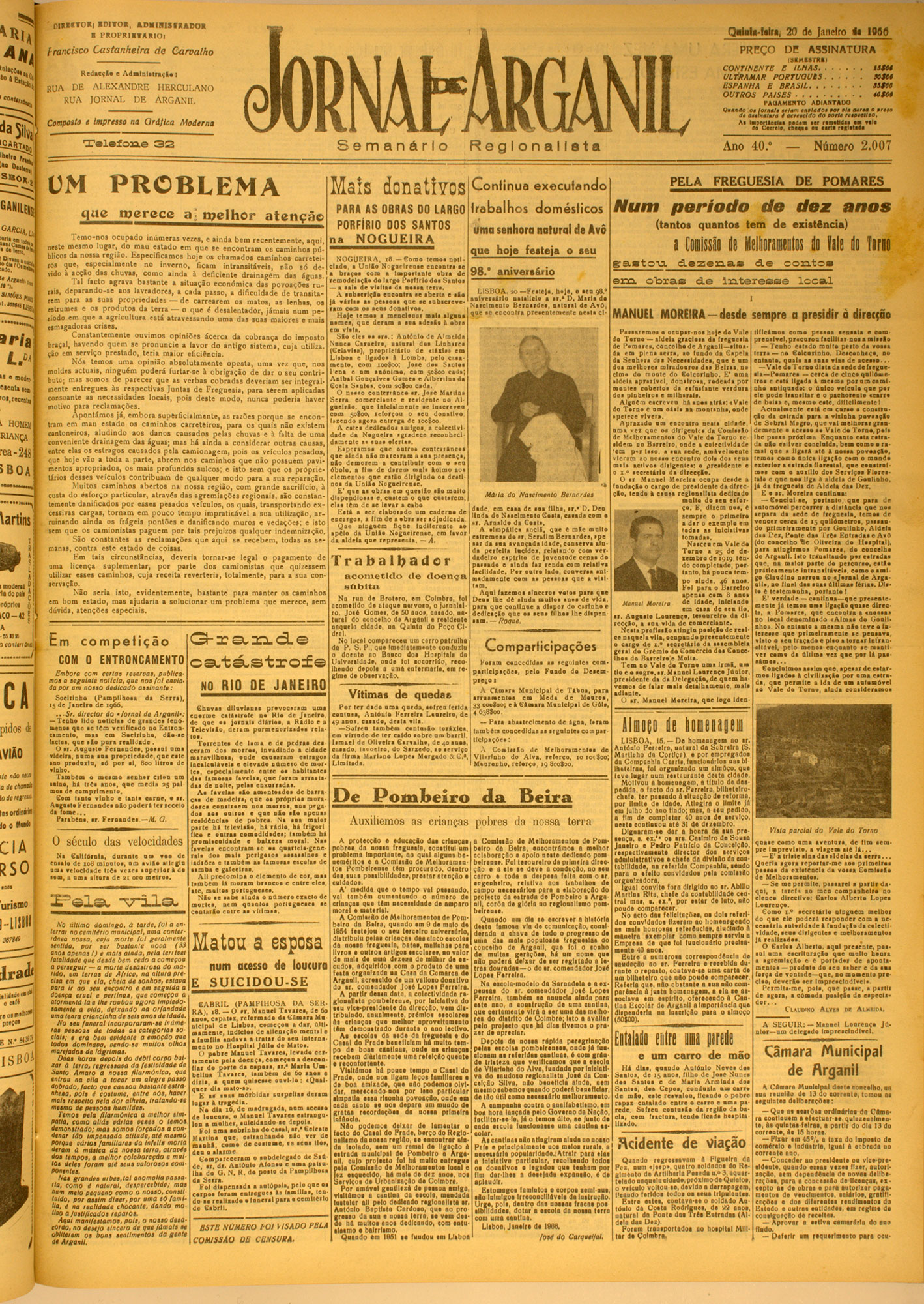 O ltU T O ll m i r o » , A D M 1S I S fK ADOK Q a la U -la tri; I PRUPKIlTAKIOl francisco Castanheiro de Carvalho R e d a c ç le e A d m in la tr a ç ie : RUA DE ALEXANDRE HERCULANO RUA JORNAL DE ARGANIL Composto e Impresso na O ri)lca Moderna T e l e f o n e PRPÇO NAbAfiGANlL a i ^ "n «Hl O s p SEU i k a Reglonallata ç a J o U S T A M QUE SEJA RAMAL Casal do Frade, p o pulosa povoação da freguesia de P om belro da B slrâ, pretende há lo n g o s a n o s que seja c onstruído um pequeno ram al de estrada que a ligue à estrada ...